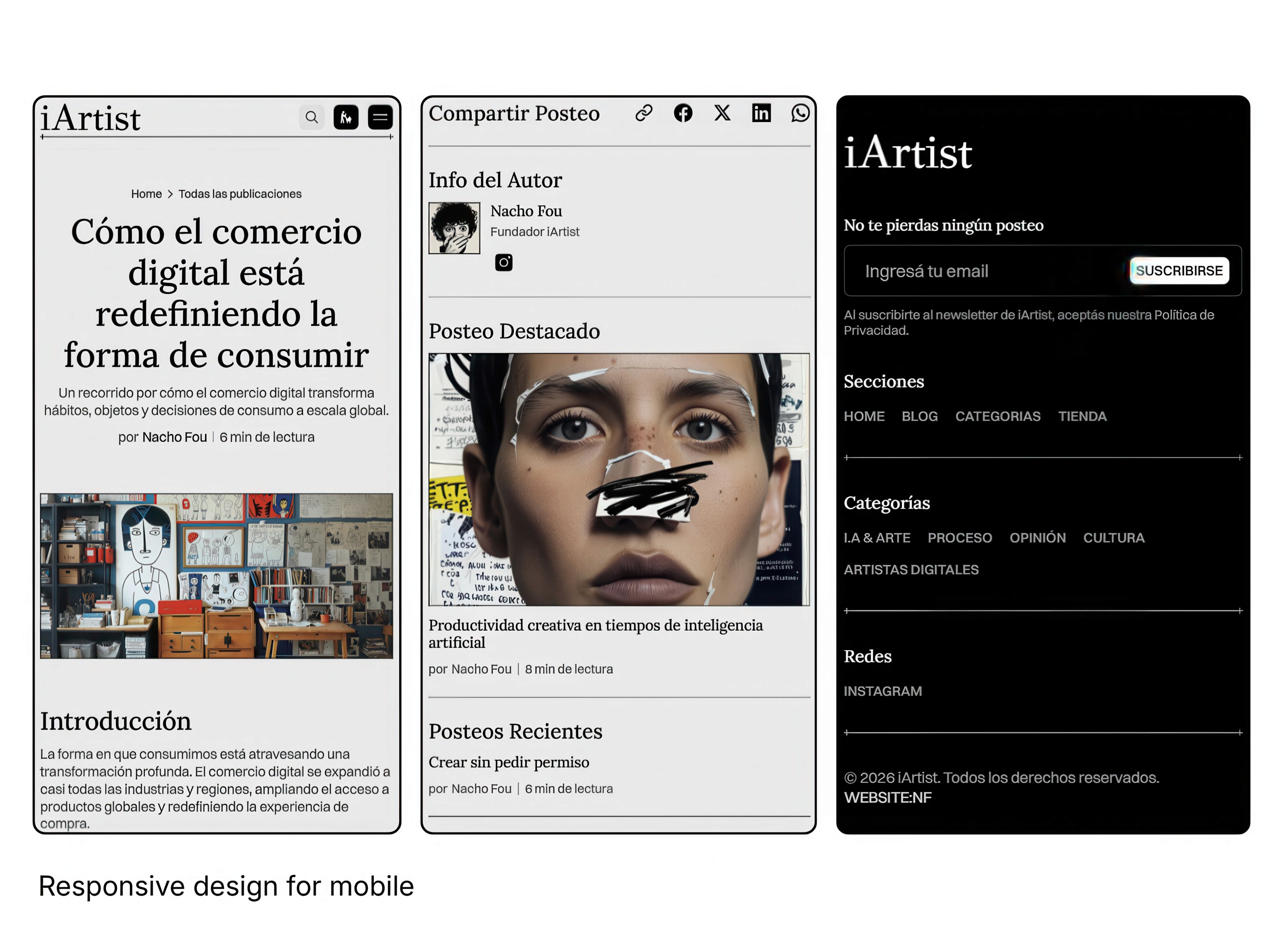 iArtist is my independent e-commerce project, selling curated art prints designed by myself and other digital artists. To support the brand and create ongoing value, I designed and built a blog exploring digital art, artificial intelligence, and modern interior design.