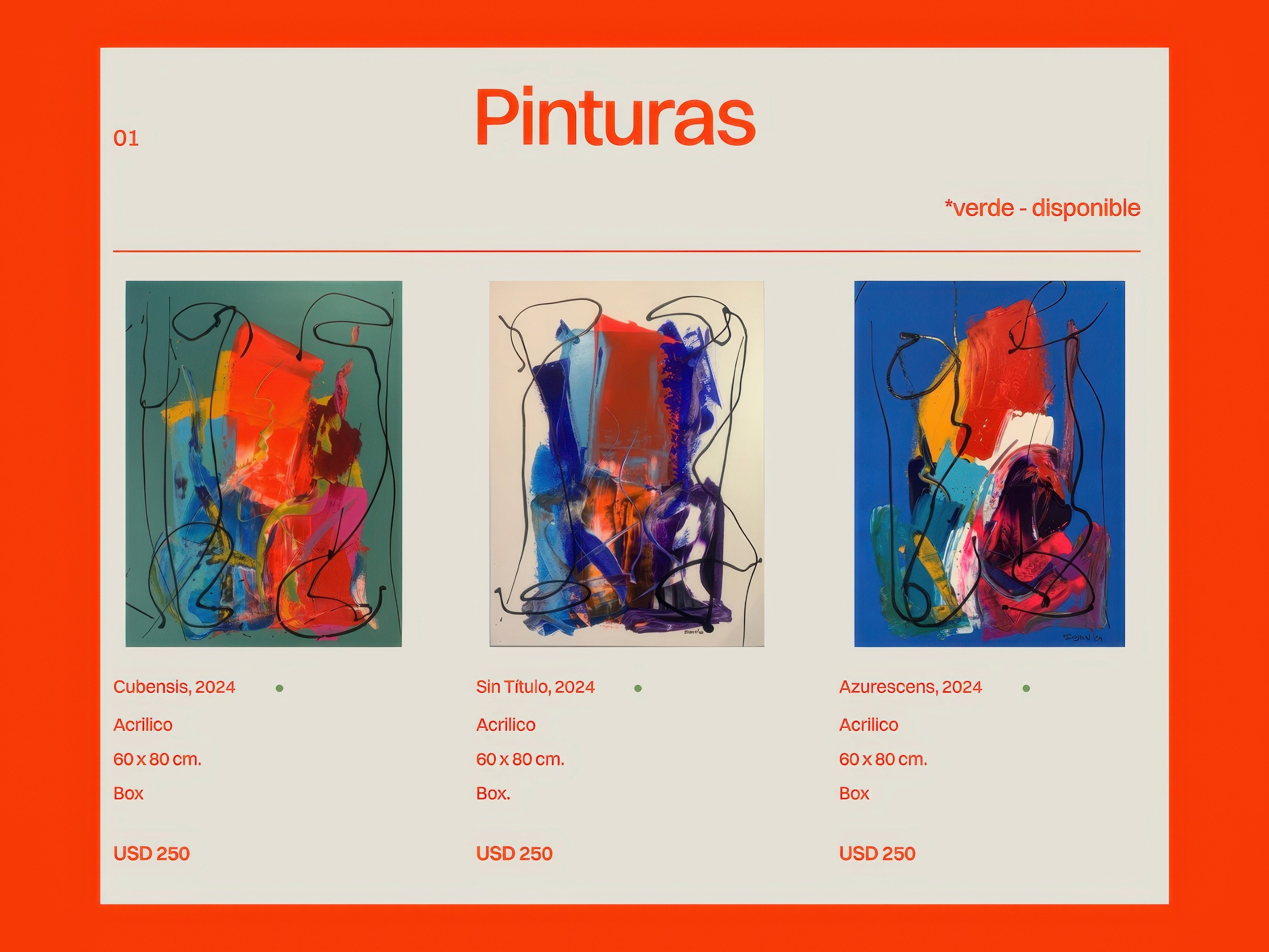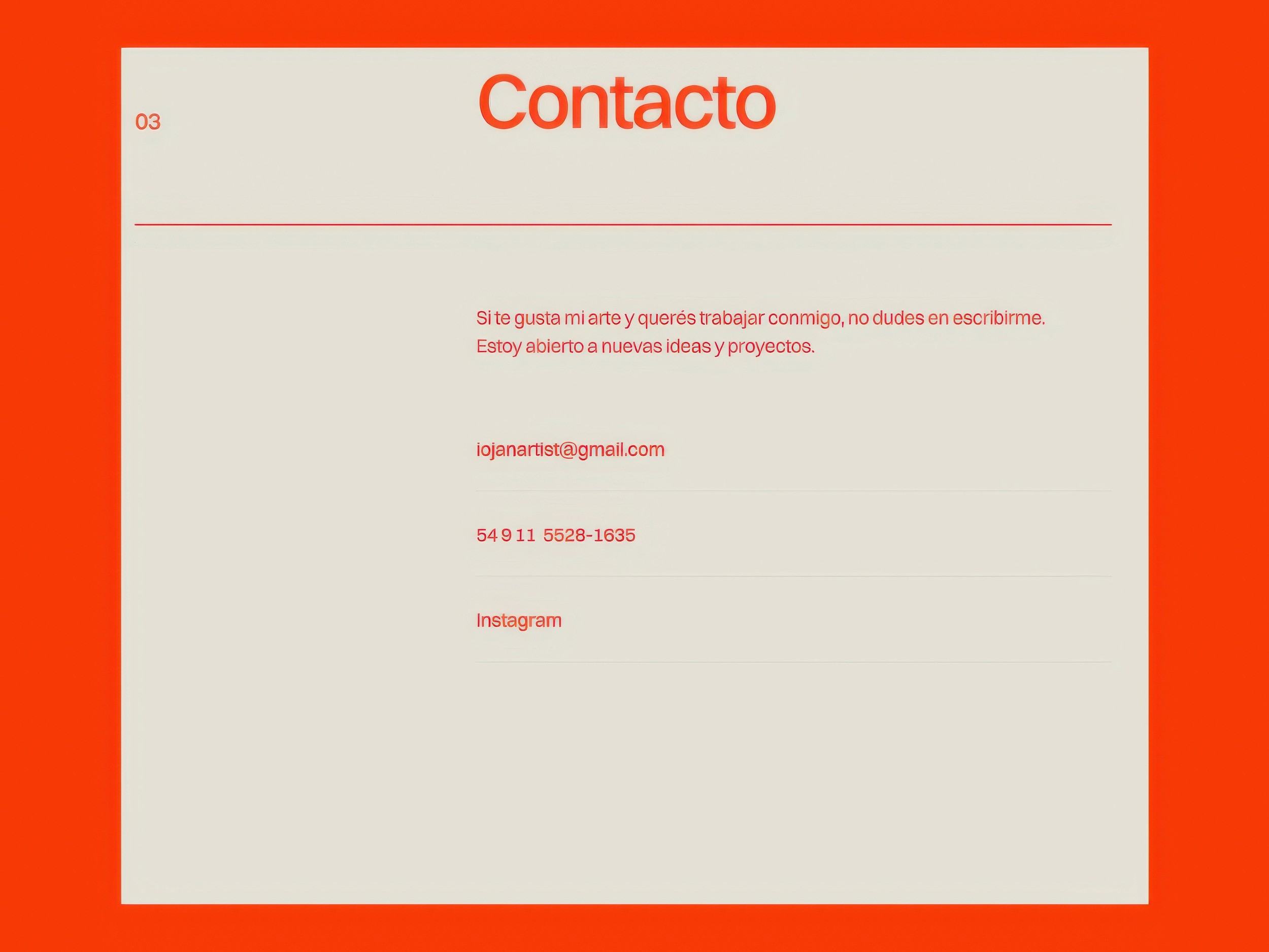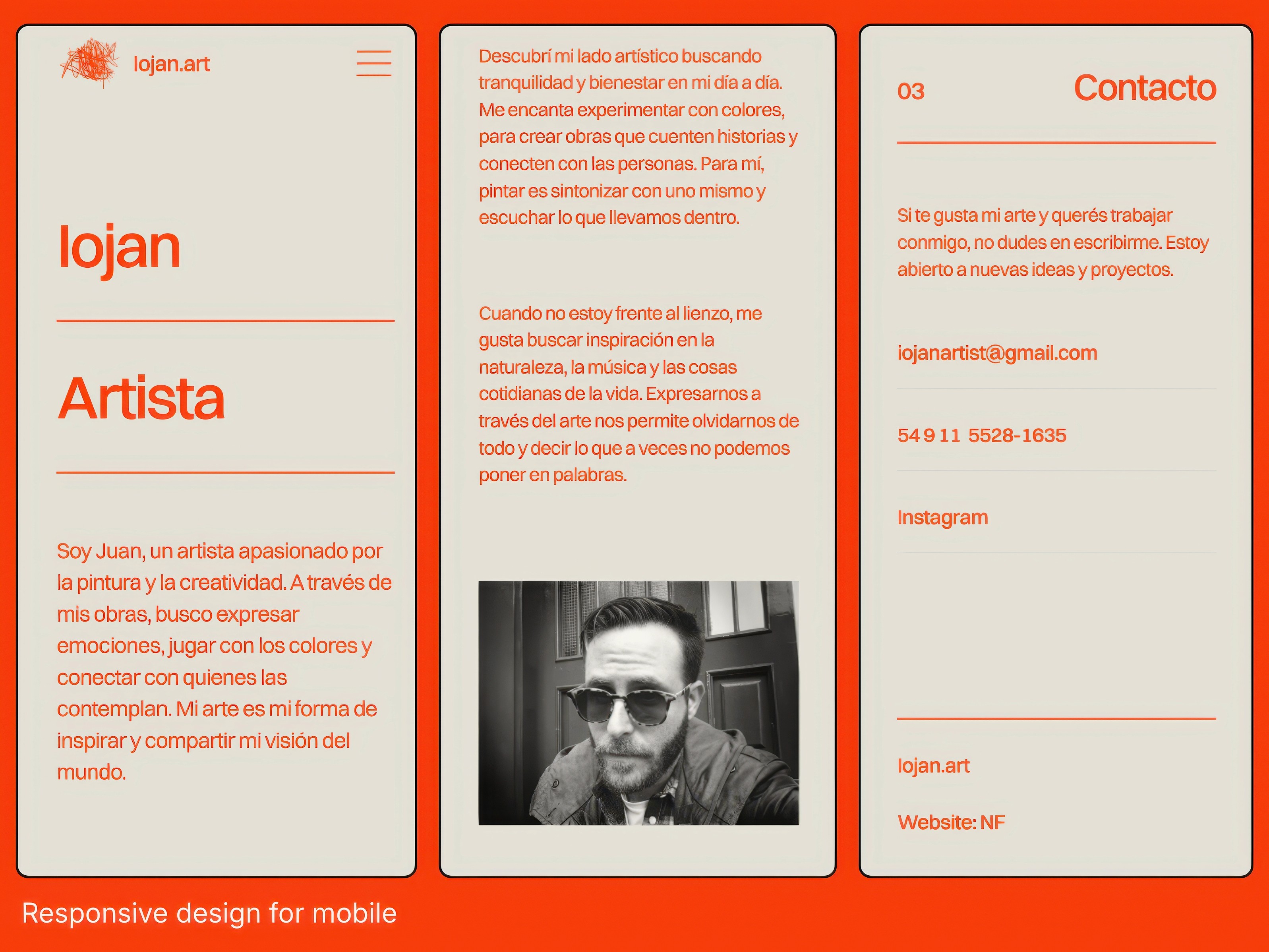 Iojan Art is a website for an emerging contemporary artist looking to present and sell his work in a simple, intentional way. The visual identity is reduced to two colors, with orange adding energy, light, and personality — reflecting the spirit of the artist.